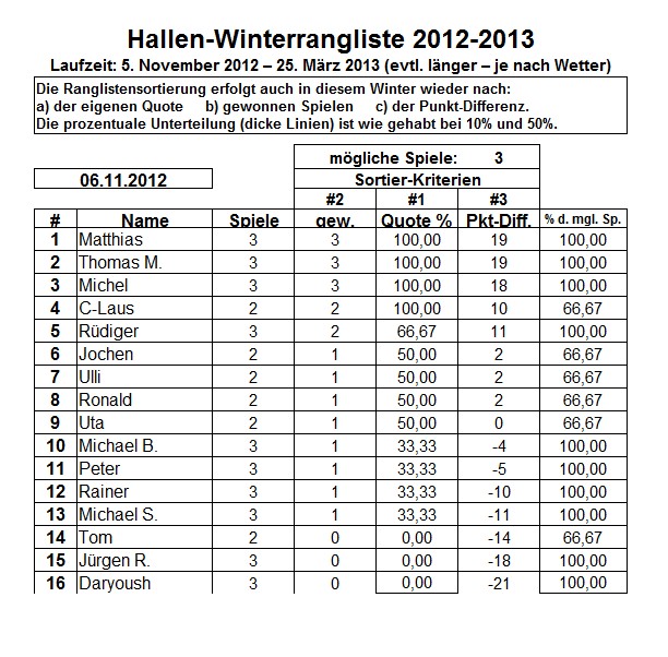 Am Montag, den 07. November beginnt die Hallensaison mit der entspechenden Winter-Rangliste.