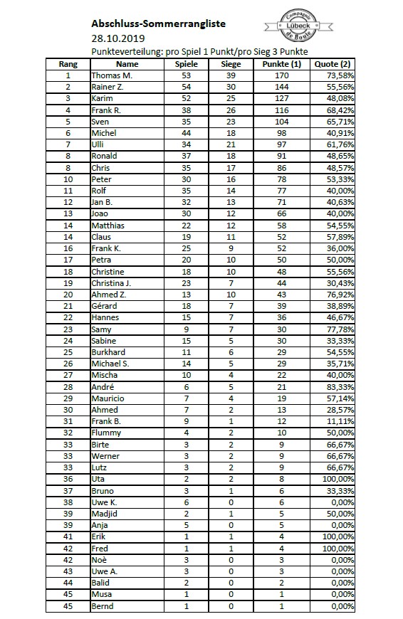 Dafür noch einmal ein Dankeschön an Rainer, der die Rangliste vorbildlich geführt hat. Max ist so nett und führt die Sommerrangliste.