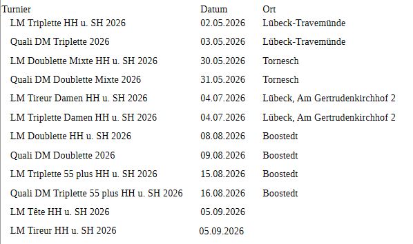 | 23.05.2026 | Boulefreunde Fehmarn Burg | ||