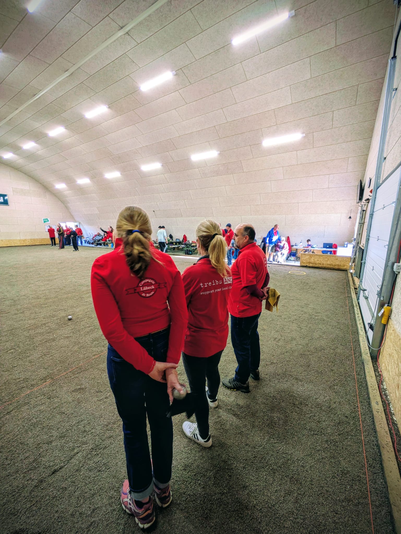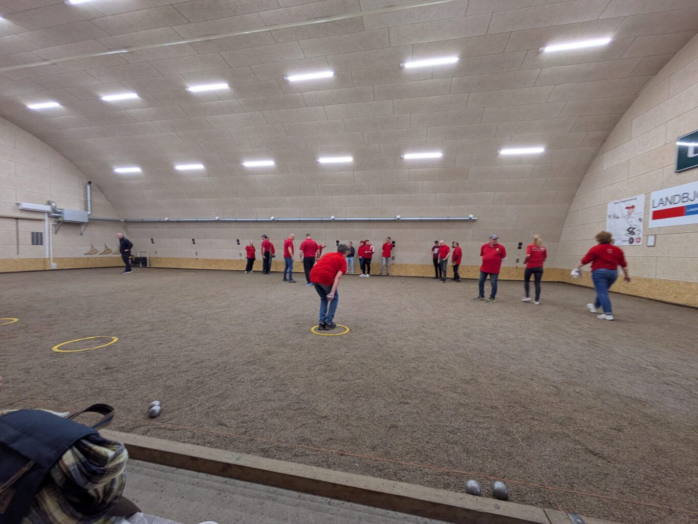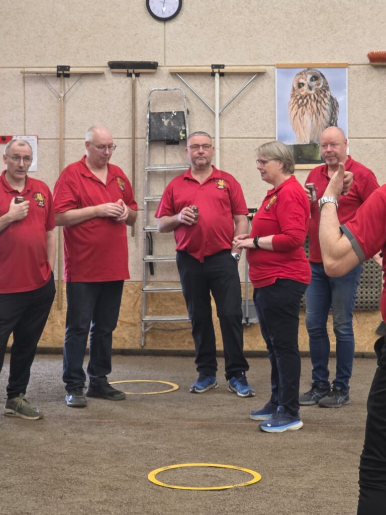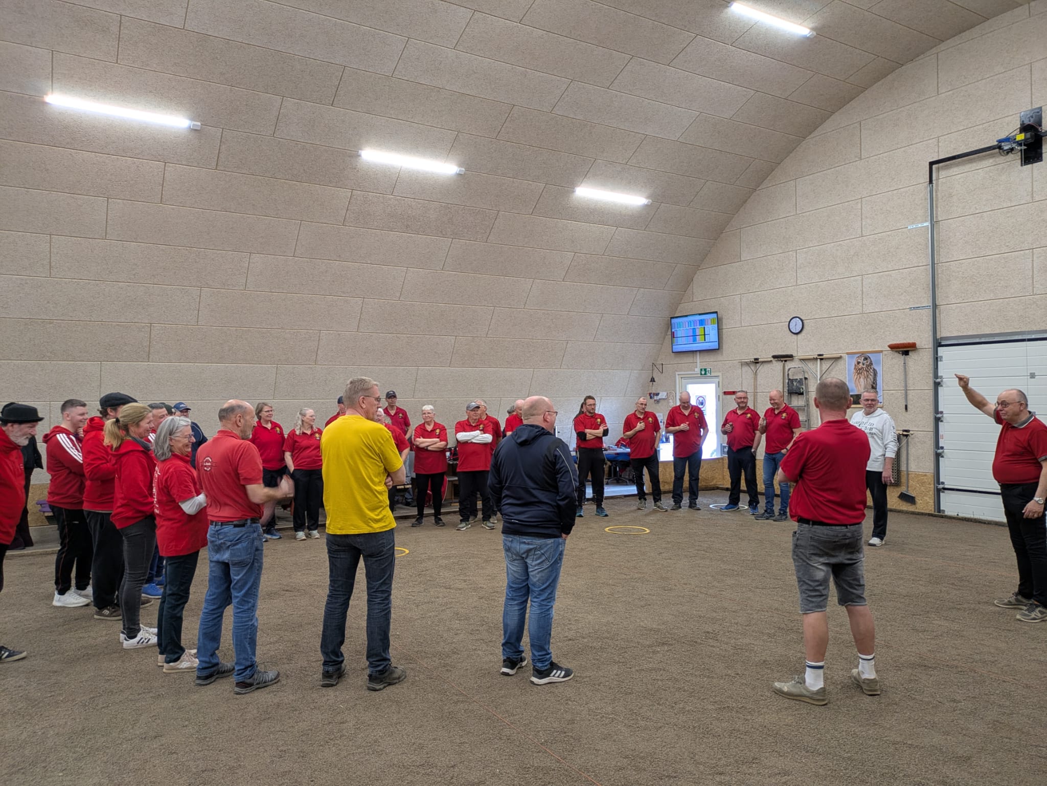 Samstag, 28.03.26; 9:30 Uhr: Nach dem Eintreffen in der Boulehalle wurden wir herzlichst von den Spieler:innen des StarPetanque empfangen und durch Peter Ellekær Hansen willkommen geheißen. Um 10 Uhr begann dann das „Freundschafts-Länder-Turnier“. 5 Spiele mit unterschiedlich gemischten Teams (unsererseits) standen auf dem Programm. Schnell wurde klar, die Dänen sind mal so richtig gut! Es wurden einige Spiele verloren (einige deutlich/einige knapp) aber auch ein paar Partien für uns entschieden. Nach den ersten 5 Spielen, von insgesamt 7, führt StarPetanque Danmark 26-14. Die Atmosphäre war dennoch gut und es hat Spaß gemacht. Ein gemeinsames Abendessen aller Beteiligten und noch ein paar Spaßspiele beendeten den Tag gegen 21:00 Uhr…der Abend klang danach noch feucht fröhlich aus!