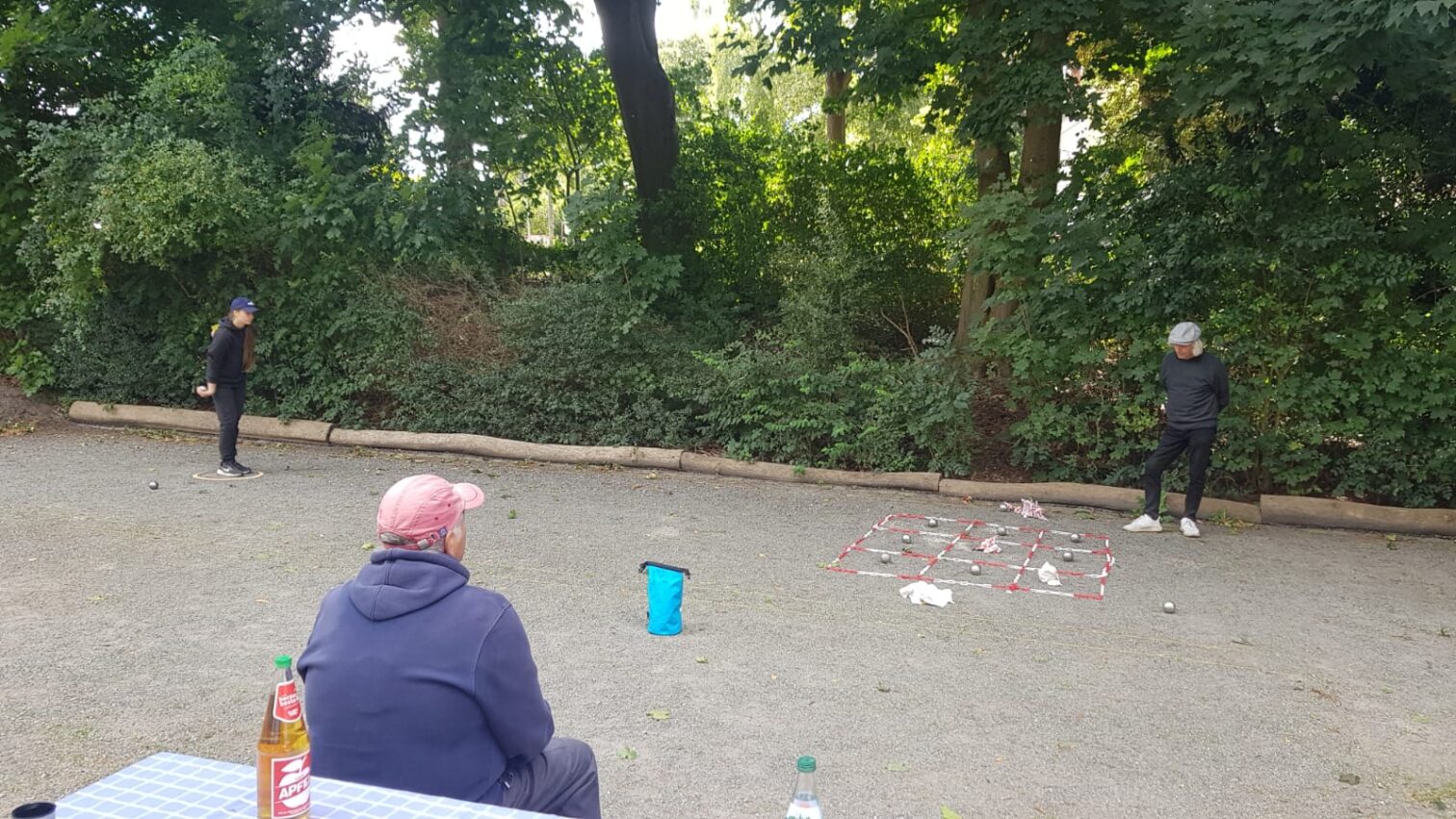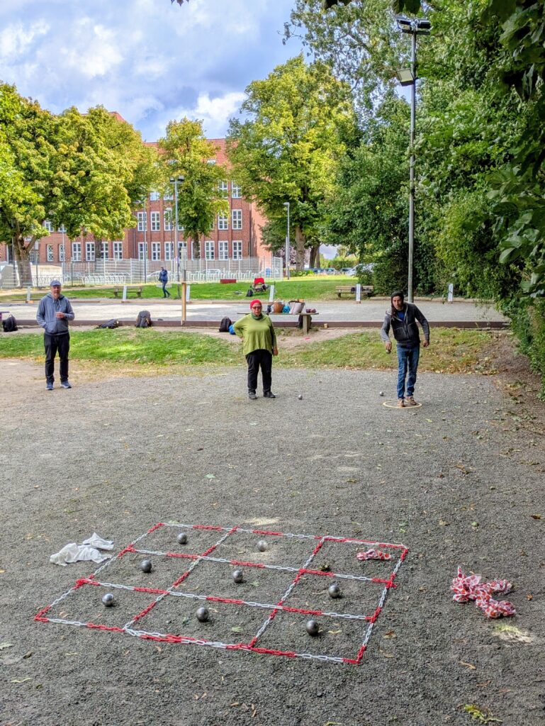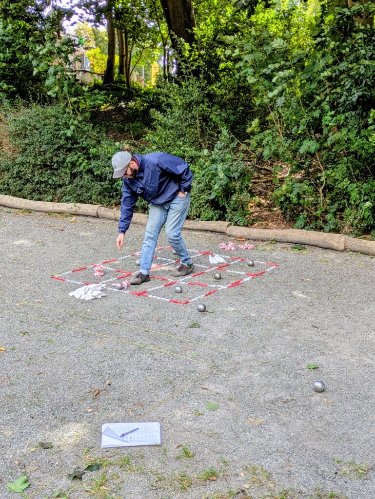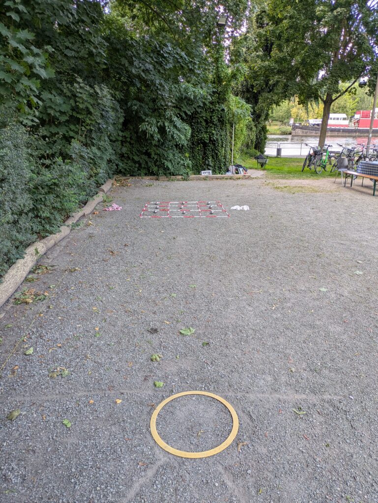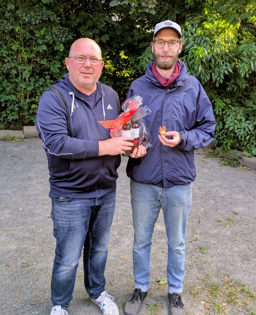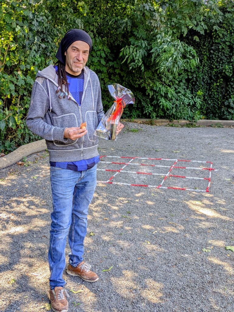 Paralell zur Meisterschaft wurde ebenfalls ein „kleiner“ Tireur-Wettbewerb in Form eines TicTacToe-Schieß-Spiels aufgebaut, per Losziehung jeweils 2 Kontrahenten ausgesucht und traten gegeneinander an. Kugeln mußten abwechselnd geschoßen werden, um als erstes 3 Felder in einer Reihe für sich zu“ergattern“. Zum Schluß standen 3 Spieler fest (Joao, Felix und René), die ungeschlagen gegeneinander im 10 Meter Präzisionsschießen den Sieger auspielten. Joao Anacleto gelang als erstes einen satten Eisentreffer zu erzielen und gewann somit verdient den Wettbewerb! Herzlichen Glückwunsch!